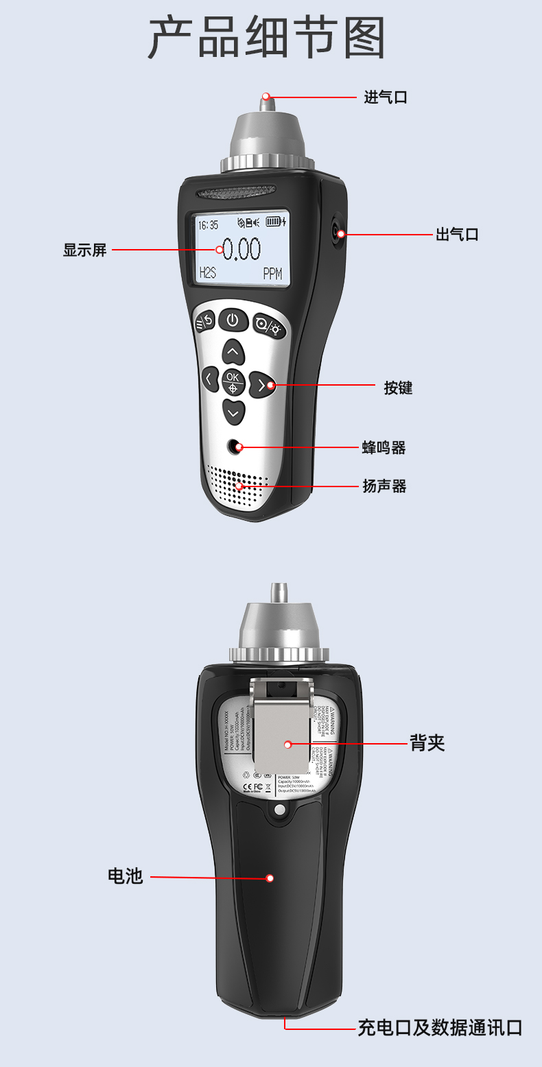 报警种类:浓度报警、欠压报警、故障报警、泵堵塞报警