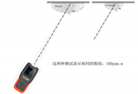 1m=500ppm ﹒ m,此时仪器显示的值为 500ppm ﹒ m